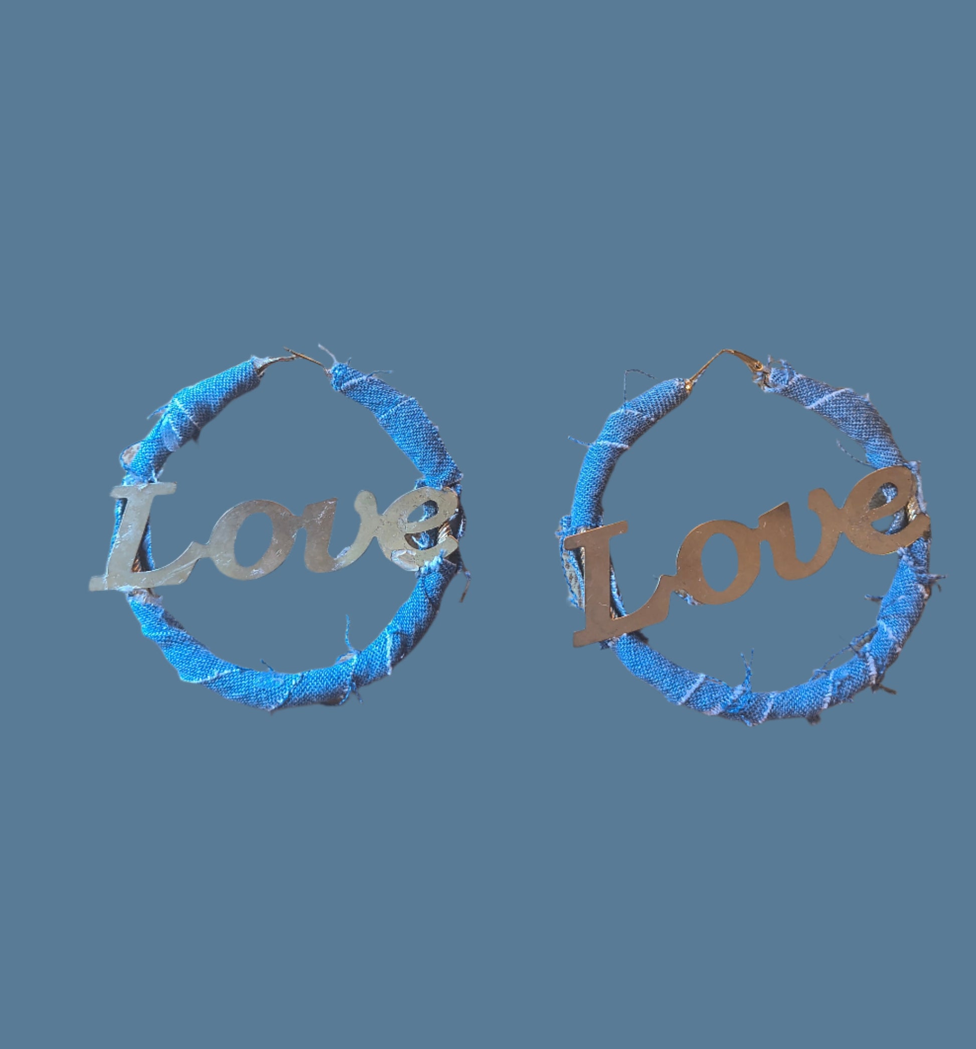 DENIM LOVE HOOP EARRINGS