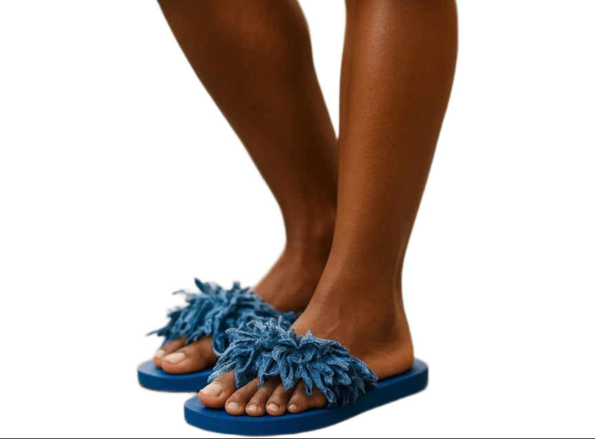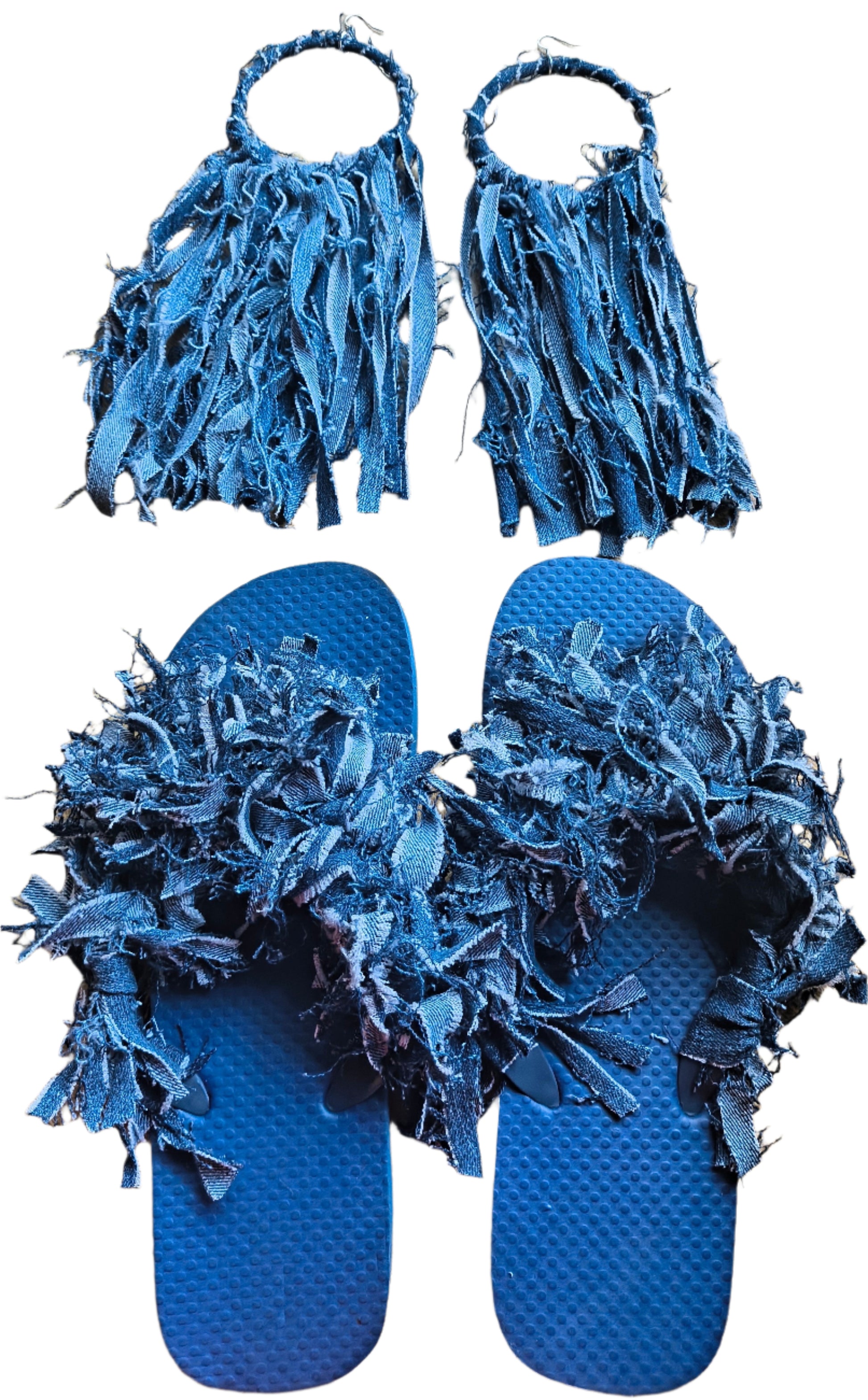 DENIM SLIPPER WITH SHREDDED EARRINGS