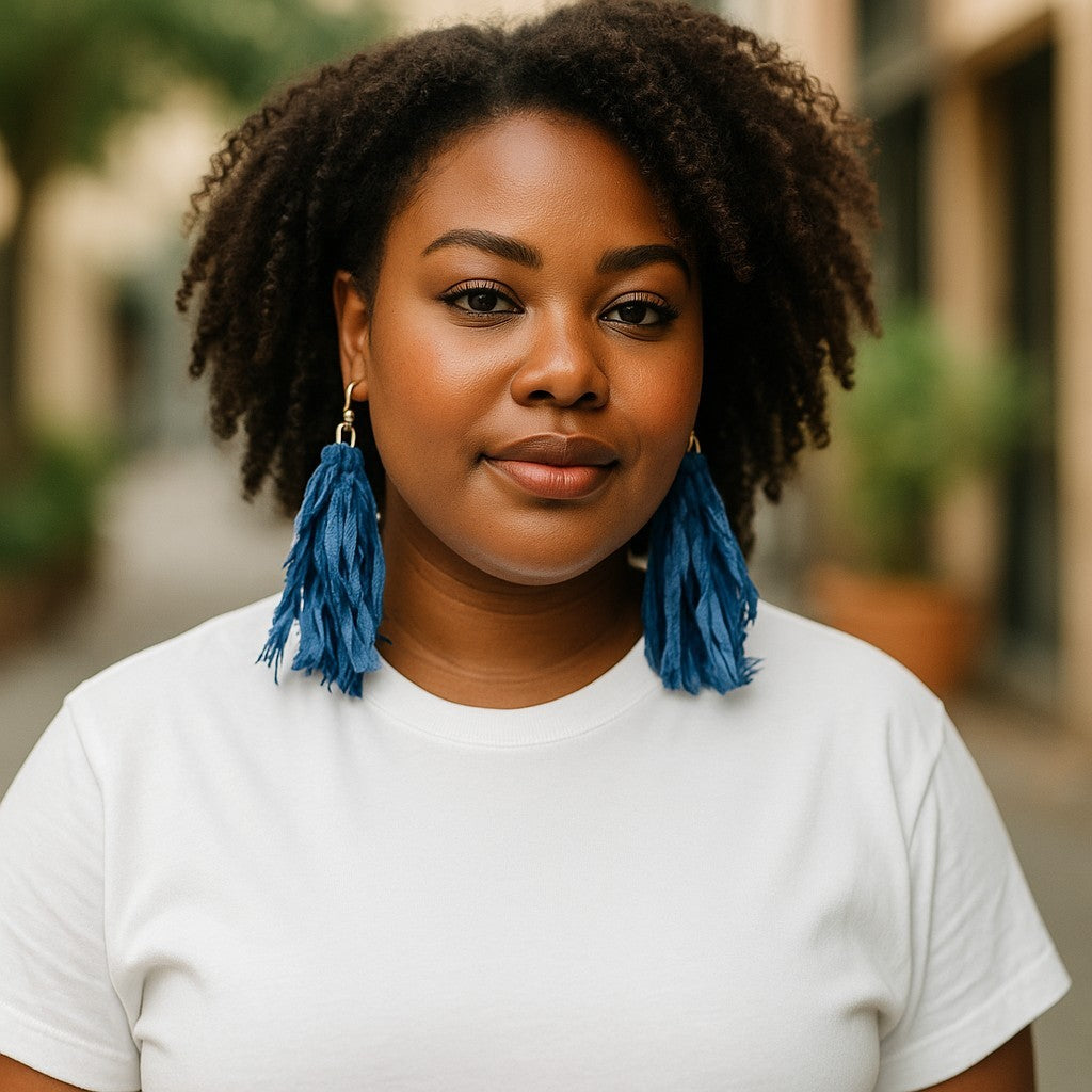 NAVY BLUE DENIM BOHO SHREDDED EARRINGS